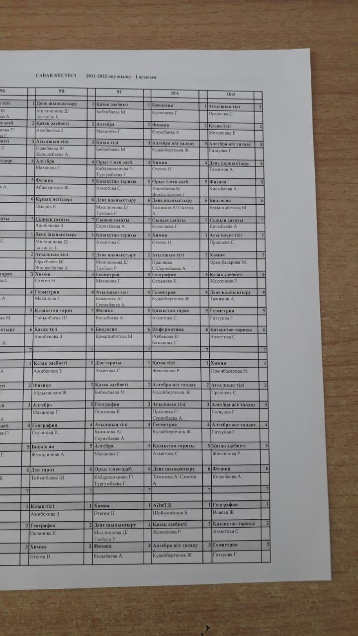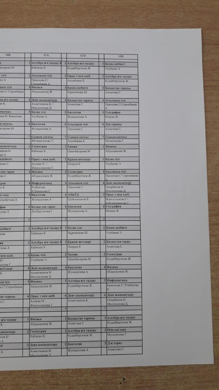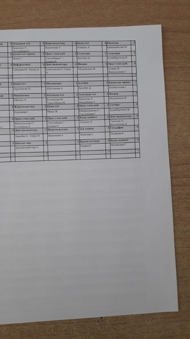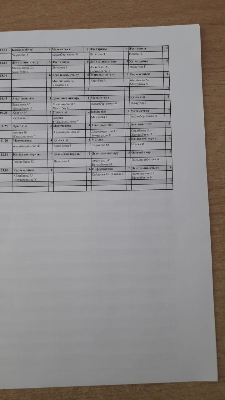 » I жартыжылдық сабақ кестесі 1-ауысым