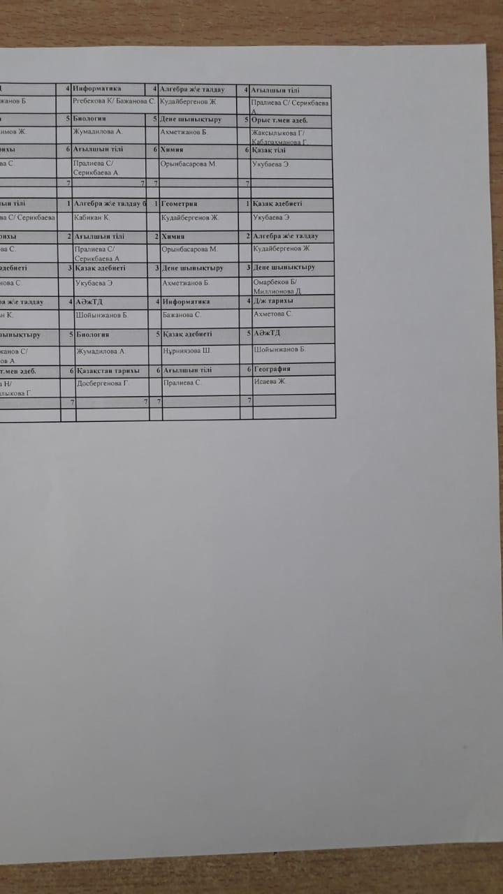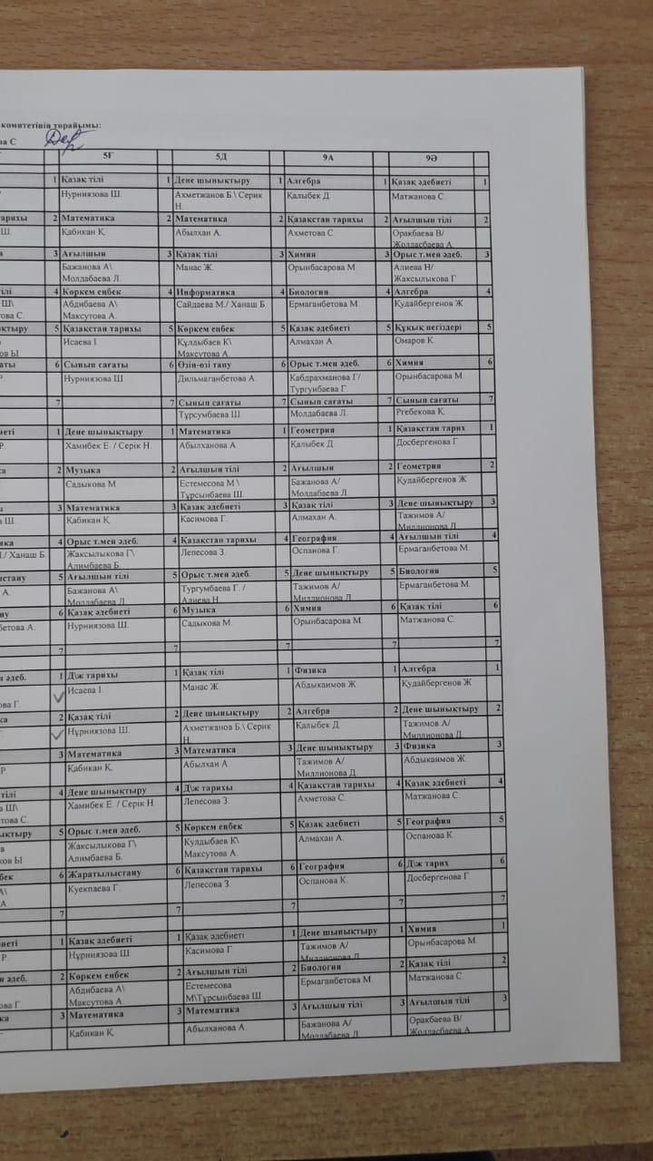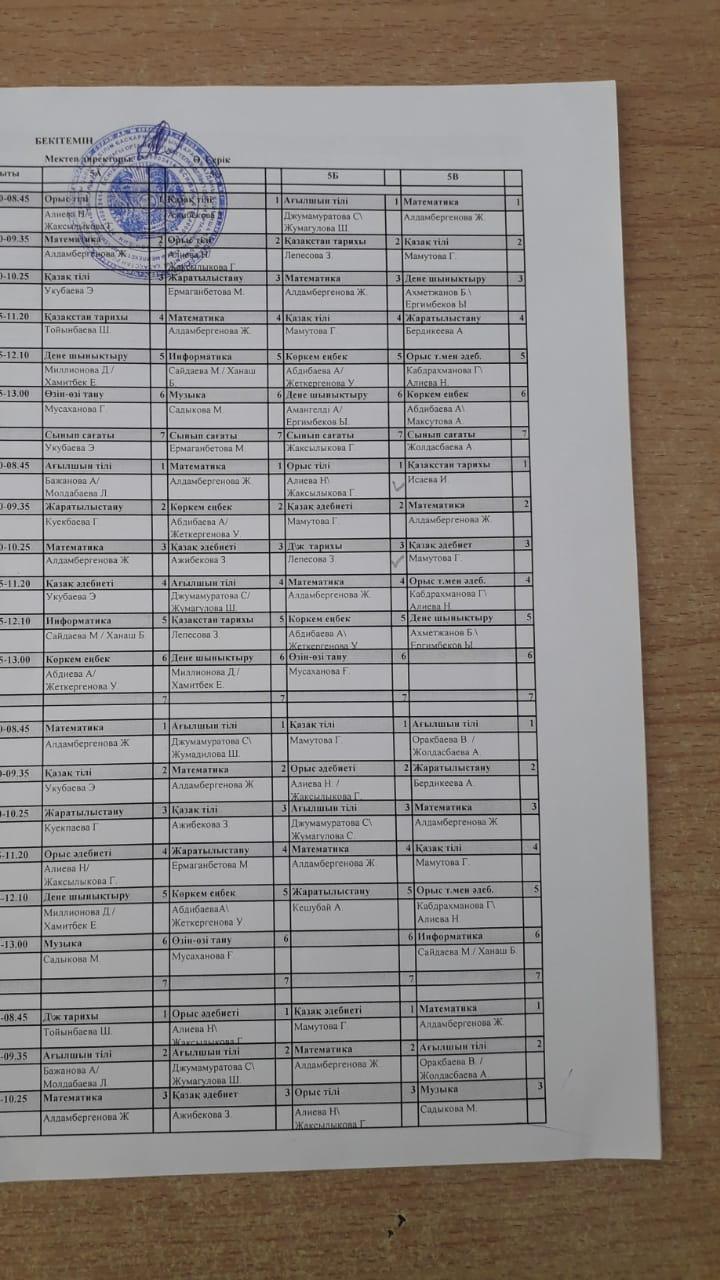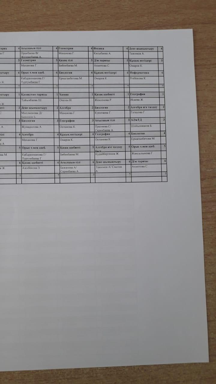 » I жартыжылдық сабақ кестесі 1-ауысым