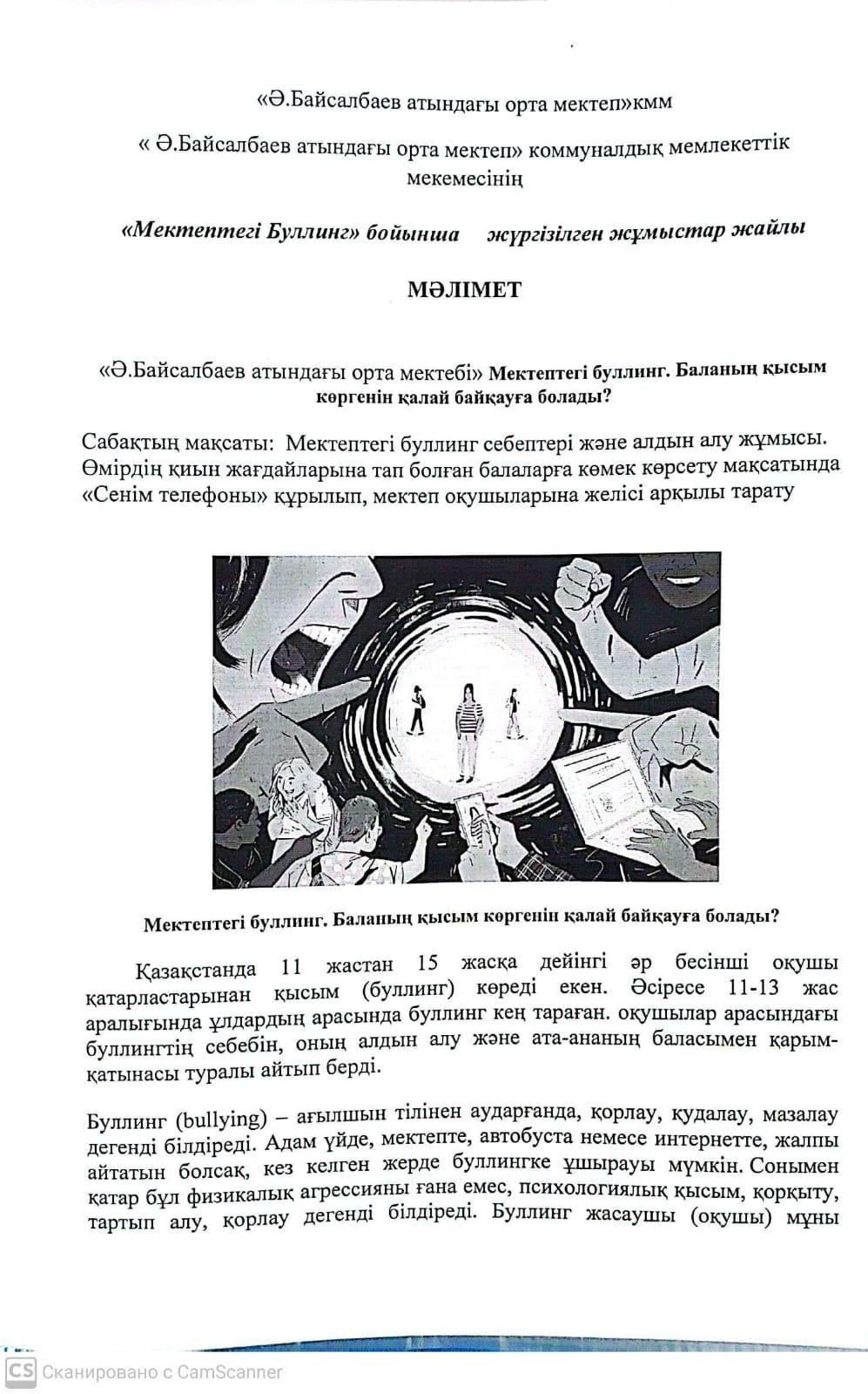 Буллинг және Кибербуллинг туралы мәлімет » А.Байсалбаев атындағы орта мектеп