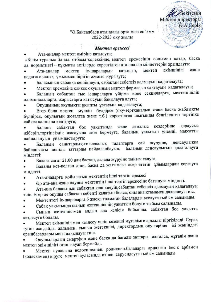 Мектеп ережесі » А.Байсалбаев атындағы орта мектеп