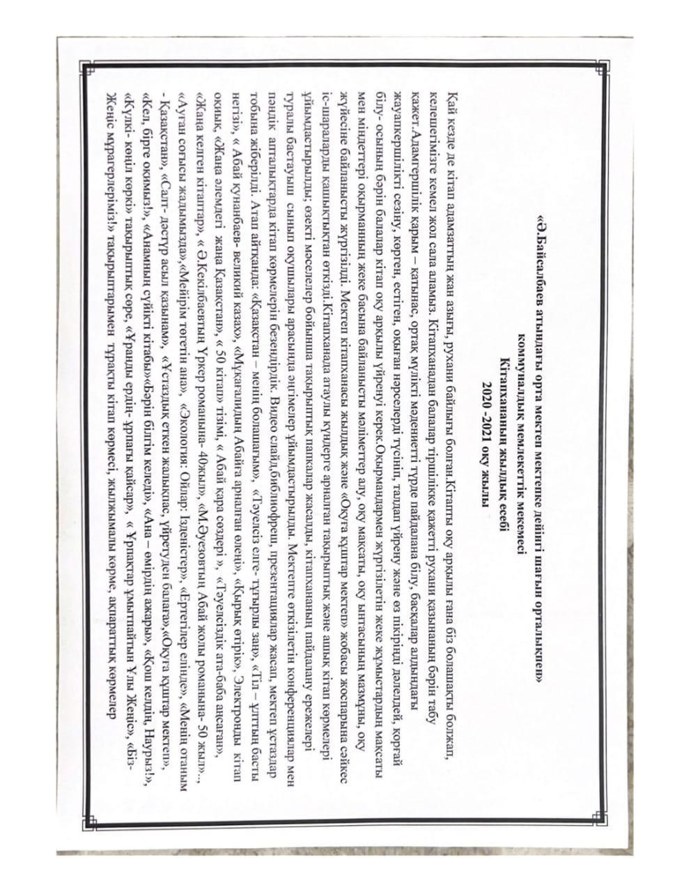 16 февраль 2023 0 1 2 3 4 5 "Ә.Байсалбаев орта мектеп"кмм Кітапхананың 2020-2021оқу жылының жылдық есебі