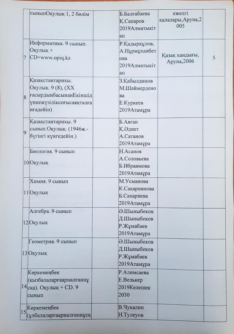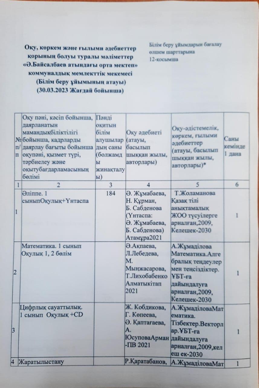 30 март 2023 0 1 2 3 4 5 "Ә.Байсалбаев атындағы орта мектеп "кмм Оқу көркемжәне ғылыми әдебиеттер қорының болуы туралы мәліметтер