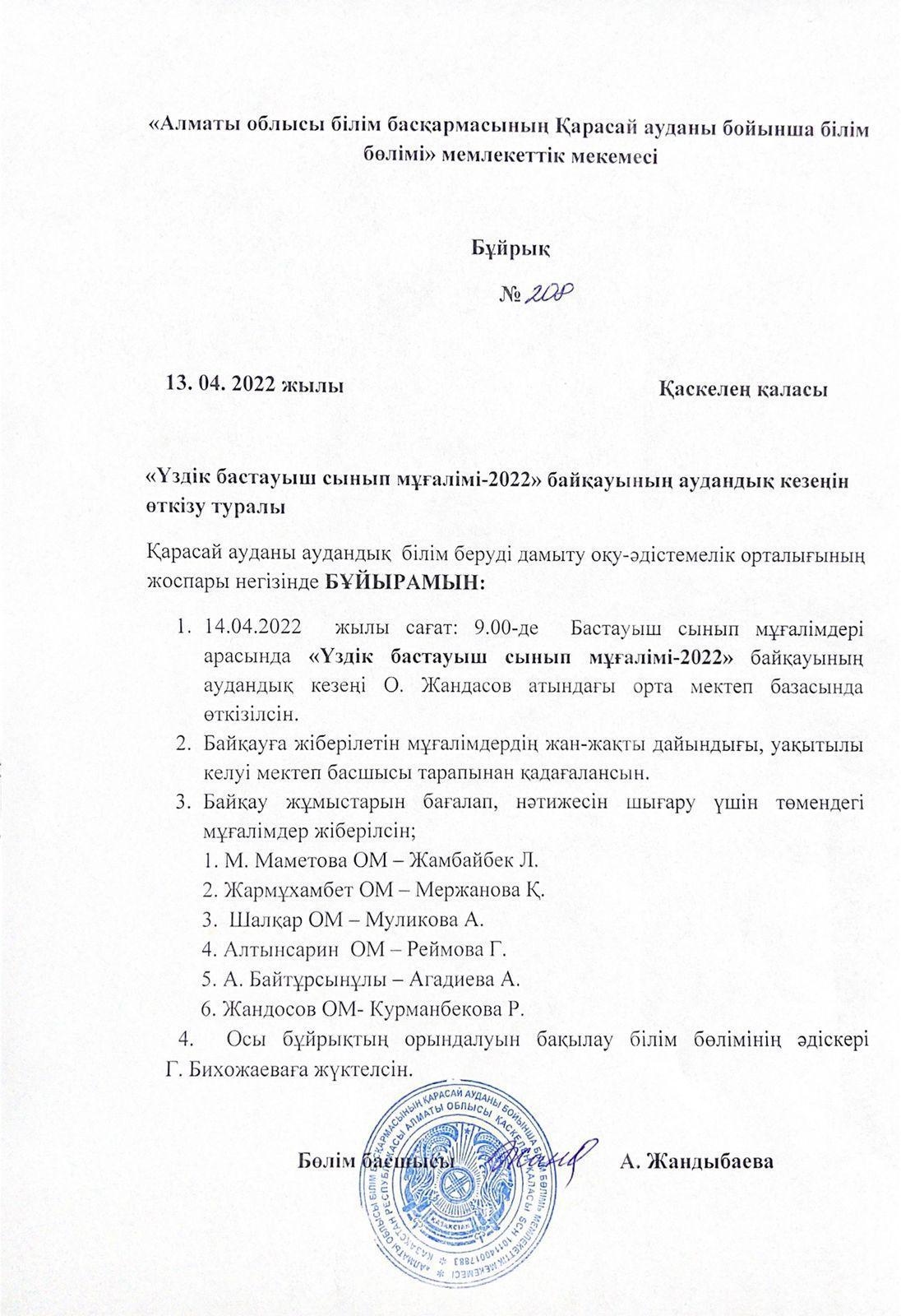 14 апрель 2022 0 1 2 3 4 5 "Үздік бастауыш сынып мұғалімі -2022" байқауында Ә.Байсалбаев мектебі бойынша Бастауыш сынып мұғалімі Лепесова Құндызай II-орынға иеленді