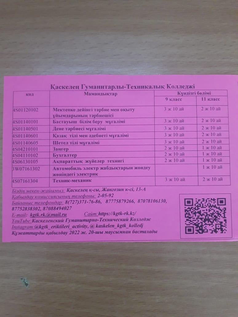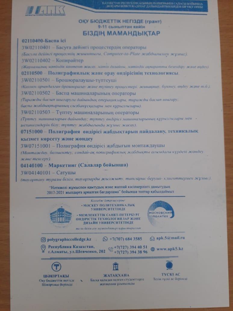 А.Байсалбаев атындағы орта мектеп » Оқушыларға » Наурыз-сәуір айларында мектебімізге Алматы полиграфиялық колледжі, Алматы техника-экономикалық байланыс колледжі, Қаскелең гуманитарлық-техникалық колледжі, Үшқоңыр су шаруашылығы колледжінің мамандары келіп, кәсіптік-бағдар жұмыстарын жүргізді.