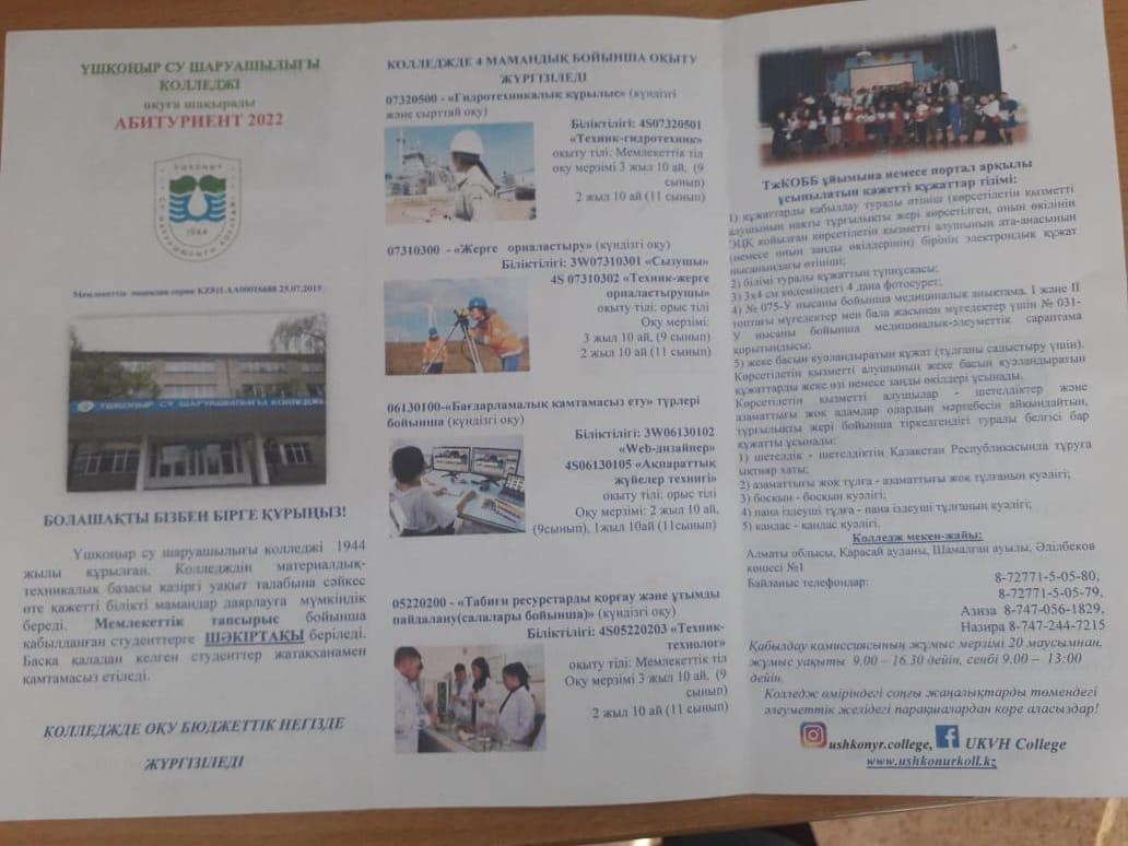 Наурыз-сәуір айларында мектебімізге Алматы полиграфиялық колледжі, Алматы техника-экономикалық байланыс колледжі, Қаскелең гуманитарлық-техникалық колледжі, Үшқоңыр су шаруашылығы колледжінің мамандары келіп, кәсіптік-бағдар жұмыстарын жүргізді.