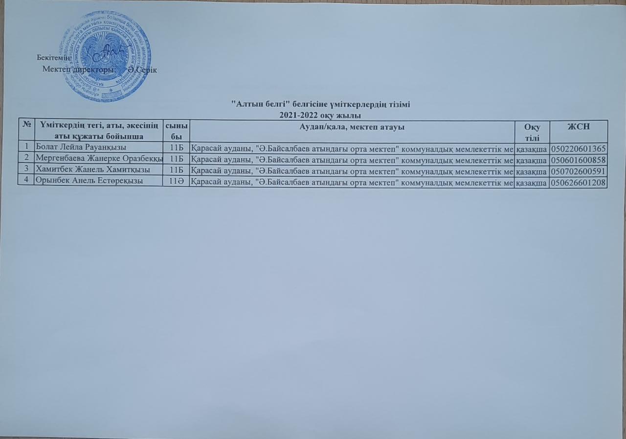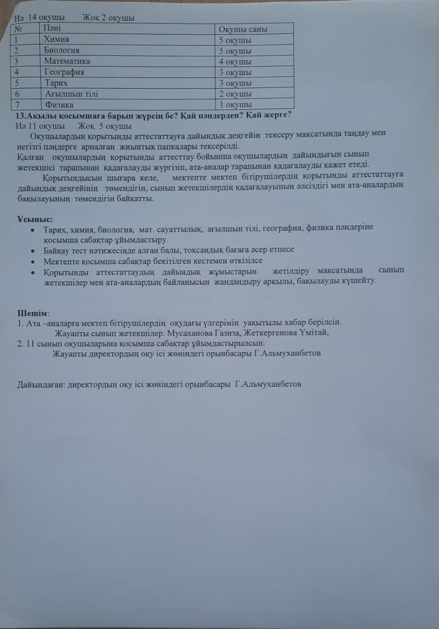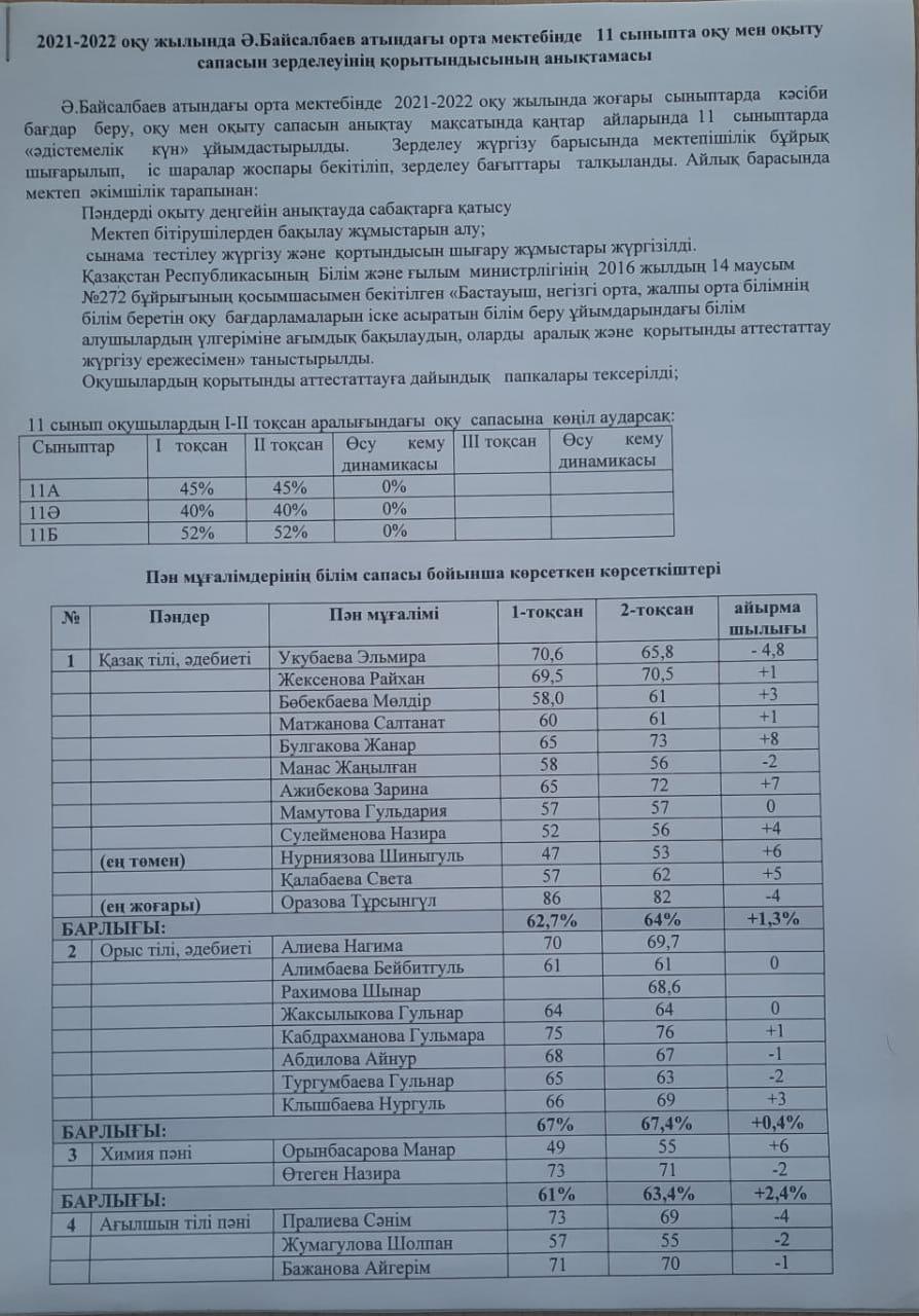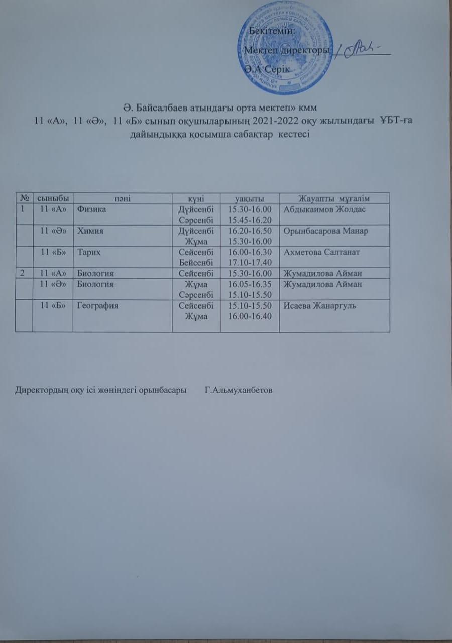 20 апрель 2022 0 1 2 3 4 5 "Ә.Байсалбаев атындағы орта мектебі" кмм бойынша 9,11сынып оқушыларының қорытынды аттестаттауға дайындық бойынша шаралар жоспары