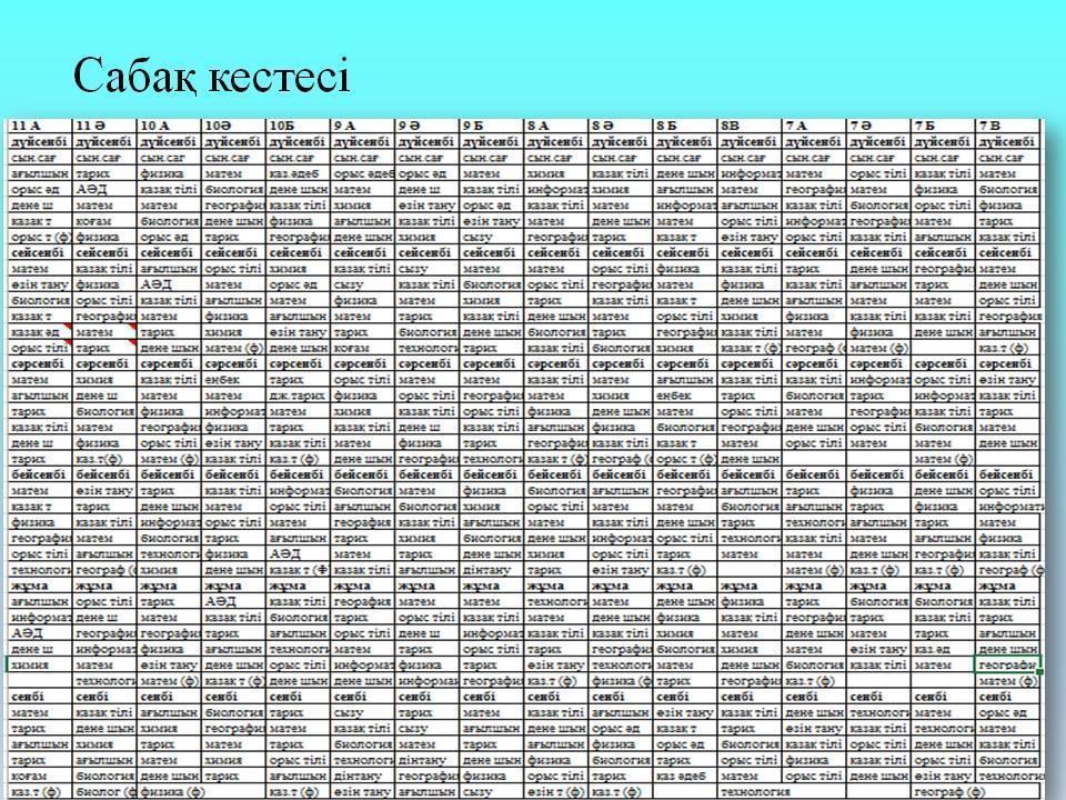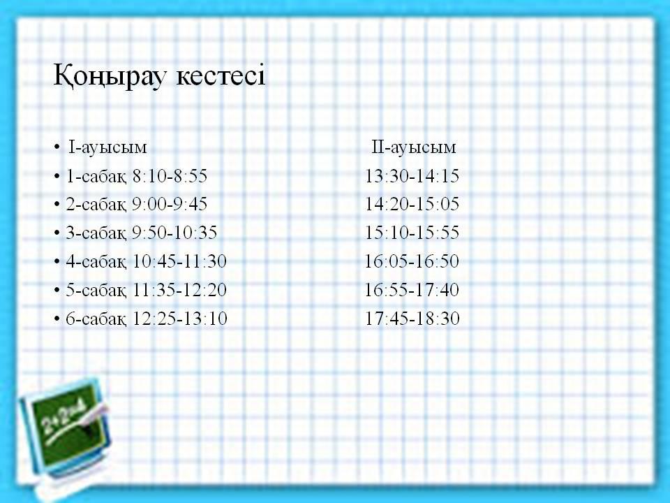Сабақ кестесі мен қоңырау кестесі » А.Байсалбаев атындағы орта мектеп