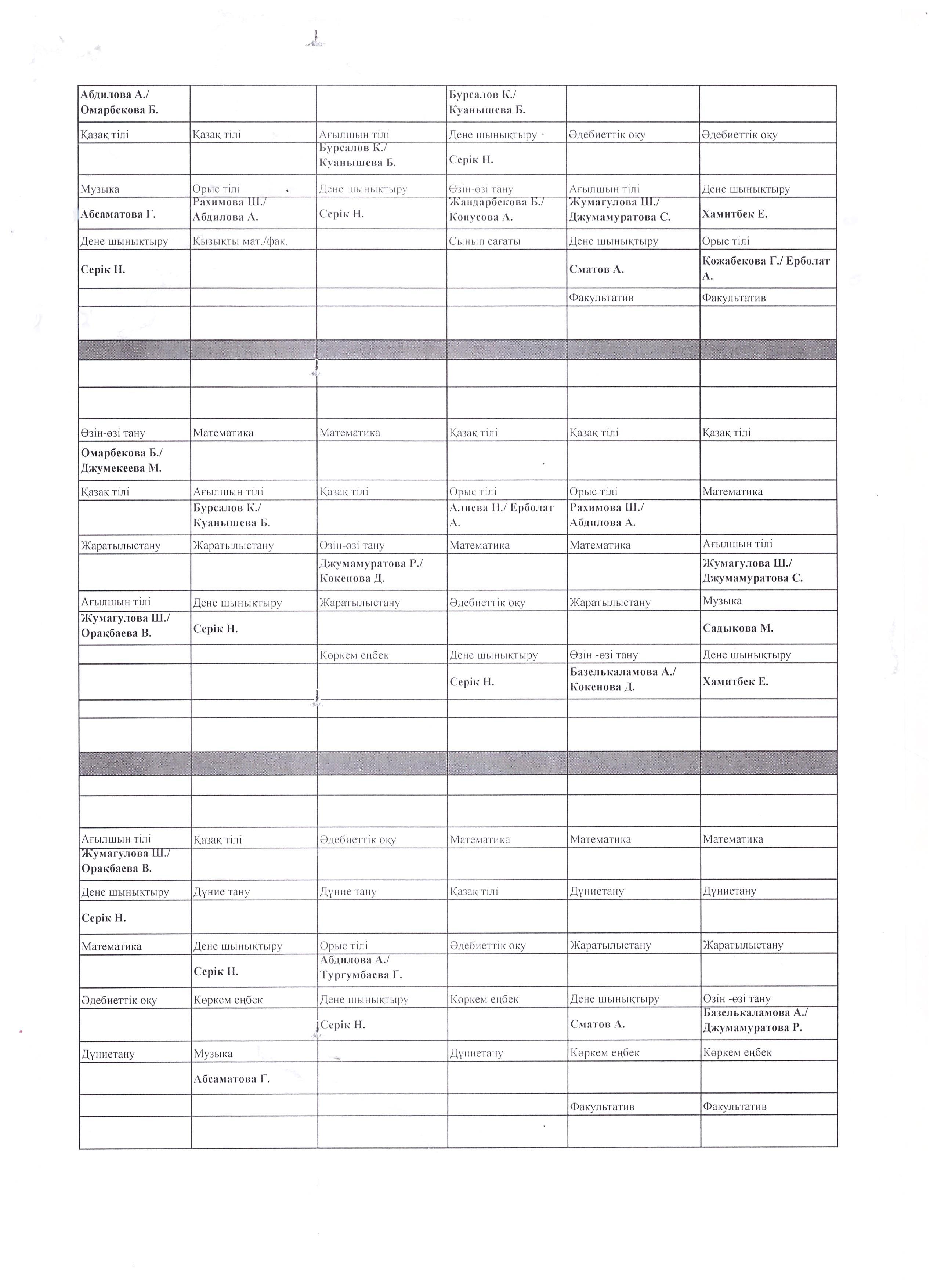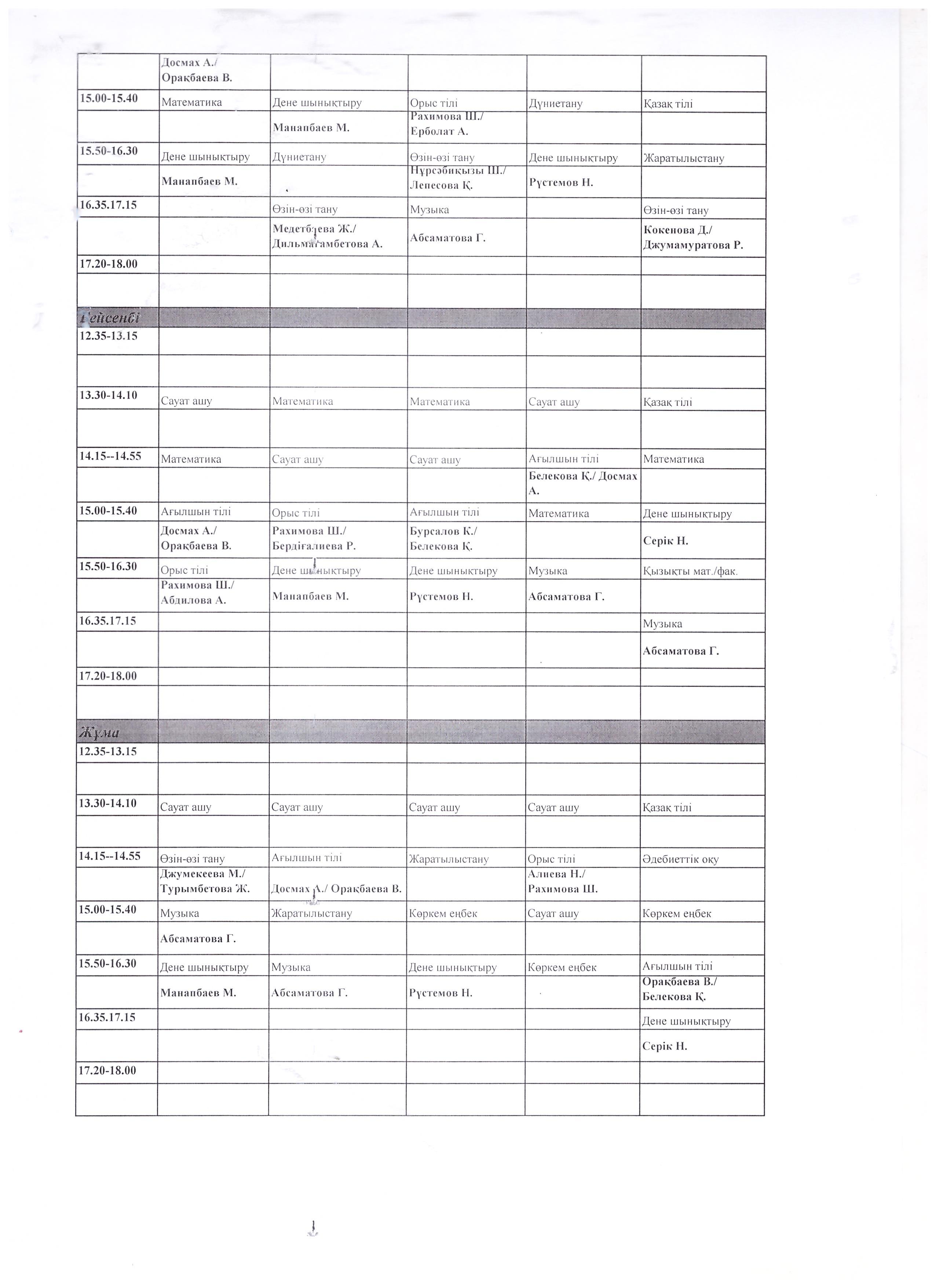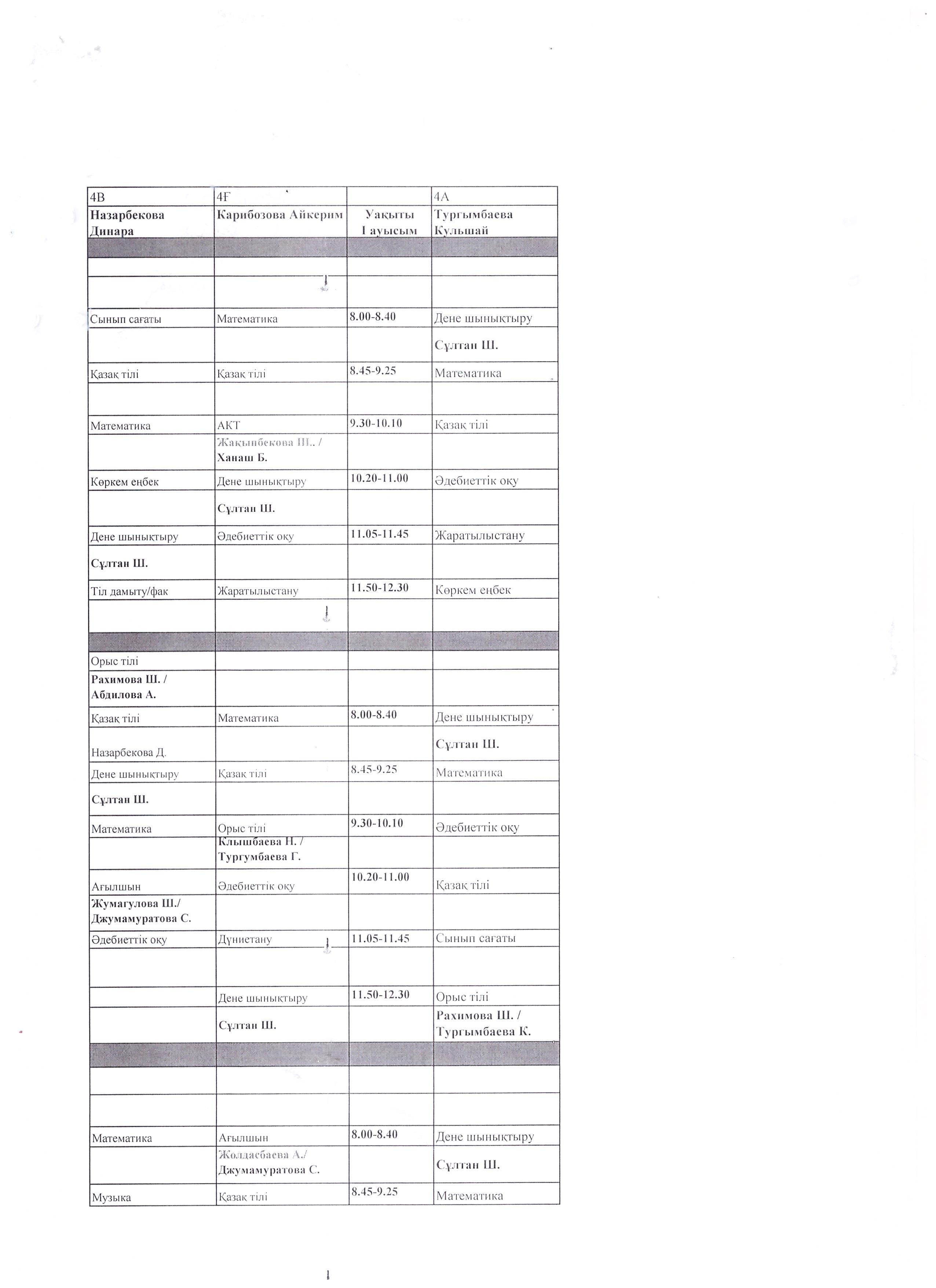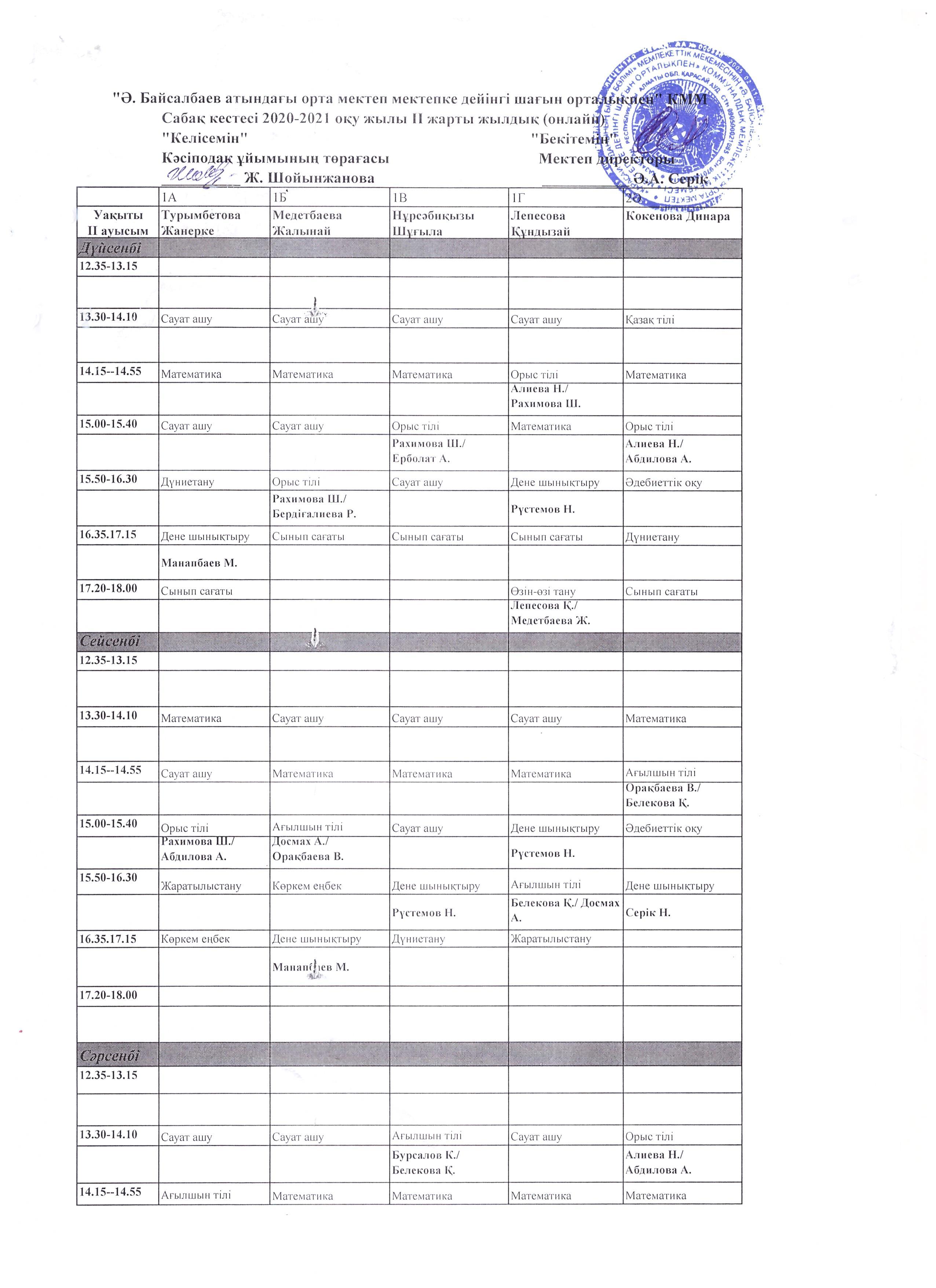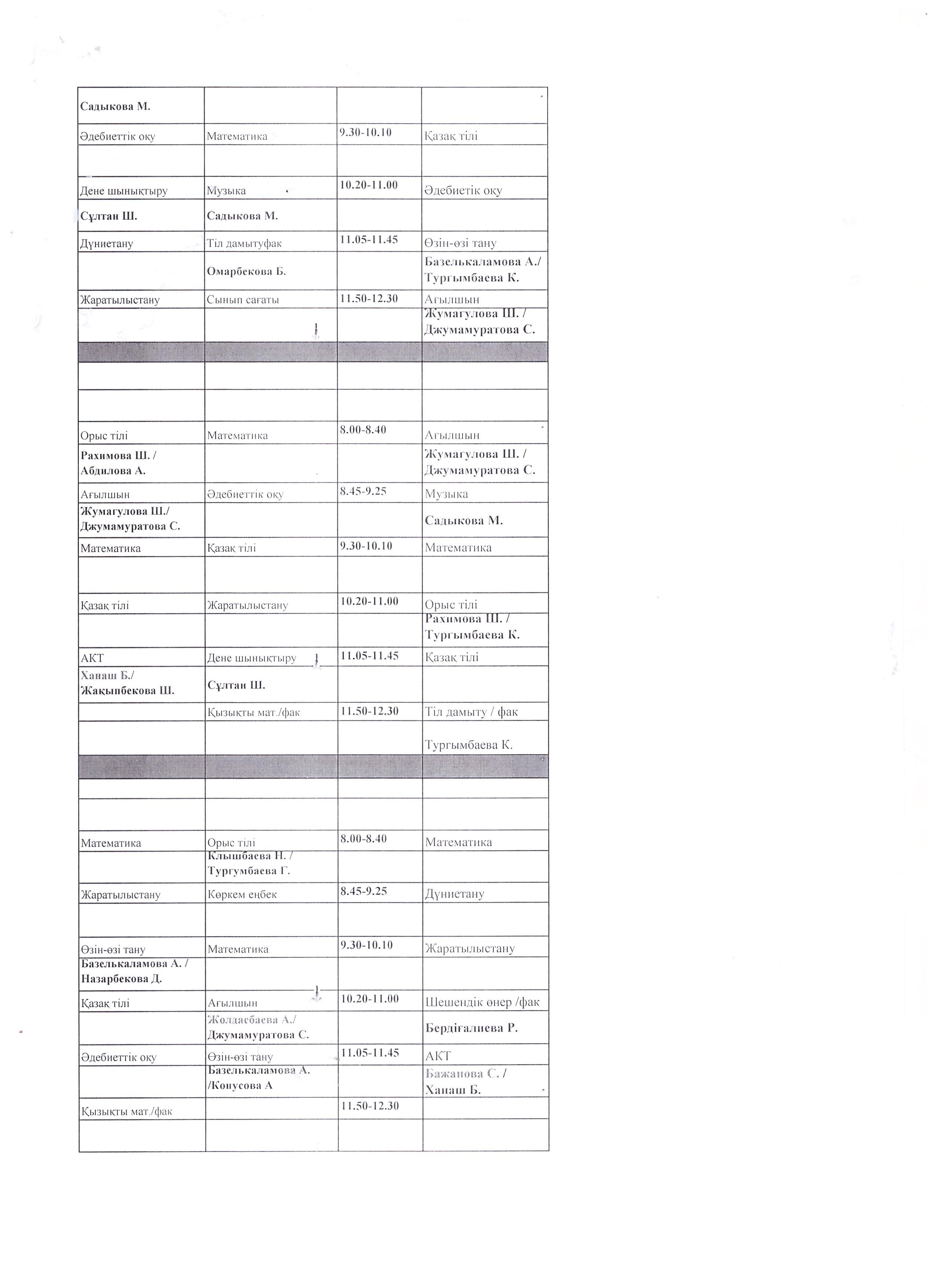 08 январь 2021 0 1 2 3 4 5 Бастауыш сыныптардың 2020-2021 оқу жылының II-жарты жылдығындағы онлайн сабақ кестесі