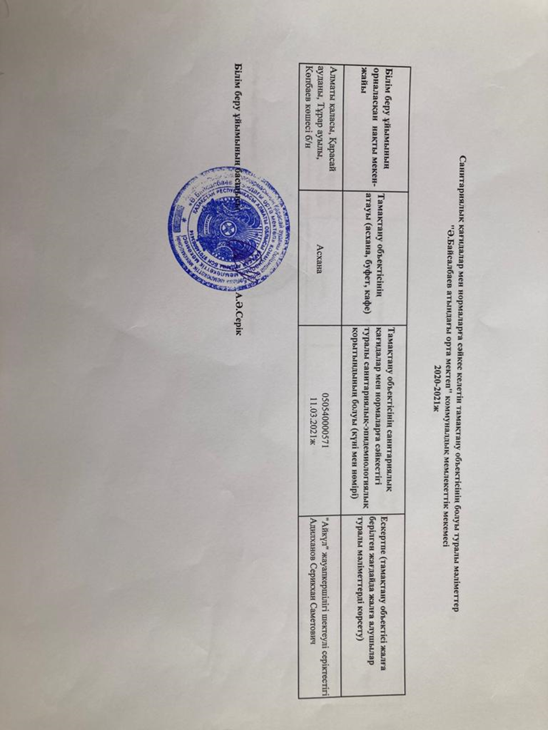 СЭС рұқсат қағазы, 2021-2022 » А.Байсалбаев атындағы орта мектеп