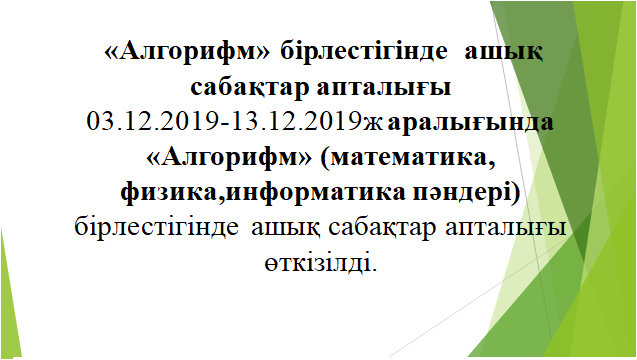 Алгорифм» бірлестігінде ашық сабақтар апталығы » А.Байсалбаев атындағы орта мектеп